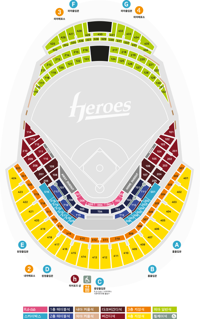 내야석 (다크버건디 / 버건디 / 3층 지정석 / 4층 지정석 / 휠체어석)